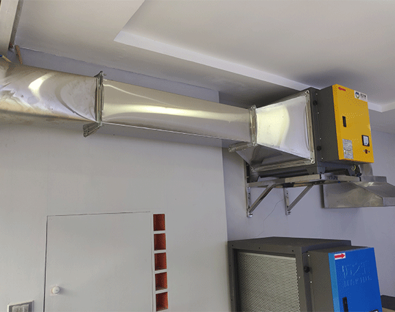 項目介紹:此次項目是給一家重慶當地的酒店進行廚房油煙進化器的安裝,該酒店由於地理位置是商業街,人群聚集地,飯點時刻人流量比較大,所以考慮到這個因素我司對安裝施工人員進行了一定的要求,安裝的位置必須要合理不允許出錯要能有效的解決酒店廚房油煙的問題,且施工時要盡可能的降低噪音以免影響大家用餐及工作。為了避免串煙問題,放棄原有煙道,直接在窗戶上開孔排煙。